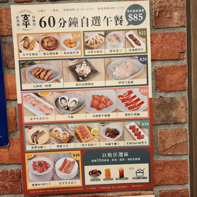 今日同同事食散水飯因為同事月尾就離職咁岩今日放12點我們由機場搭45分鐘巴士去荃灣食飯朋友喜歡食牛,又要求多多要食和牛搵左好耐,睇到傳單 安平燒肉 午市套餐 60分鐘用餐時間最低每人消費$85可享用自助新鮮蔬菜,飲品區每人有一杯哈根大師雪糕性價比相當高鹽蒜燒生蠔 $32/2隻肥美飽滿生蠔舖滿蒜味鹽醬特顯獨特鮮味烤帆立貝$38/2隻新鮮肉質彈牙舖左牛油燒完保持肉質鮮嫰爽彈虎蝦$38/2隻炭火燒烤充滿著蝦既鮮味肉質彈牙無比M5和牛$48/5片霜降效果入口即溶嫰滑牛舌芯 $48/3條燒烤必食比較罕有肉質較細嫰多汁牛舌片 $32比較薄身爽口櫻花蝦飯必食白飯軟熟蔥花新鮮櫻花蝦特別香氣滷水汁帶點鹹非常一流我食晒成碗飲品自助百香果綠茶無糖清除味蕾同解膩蔬菜區生菜爽口粟米多汁菠蘿爽甜雪糕柚子檸檬馬卡龍雪糕柚子檸檬帶出清爽…查看更多