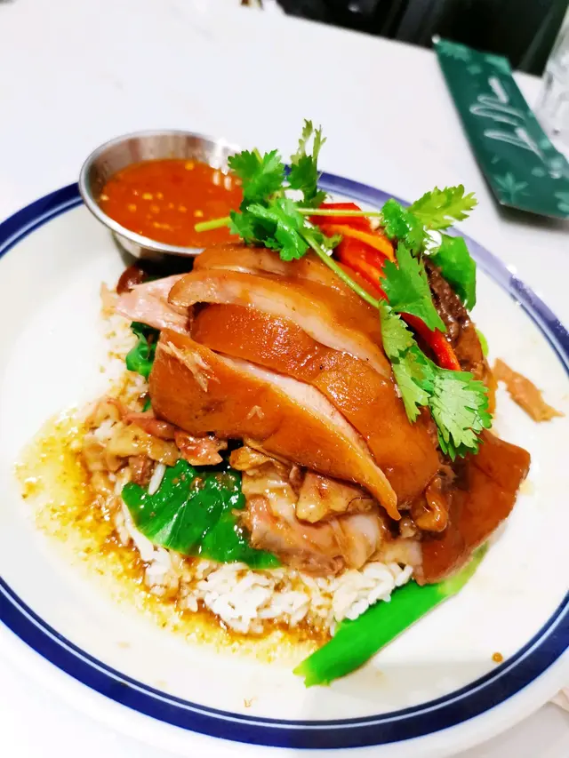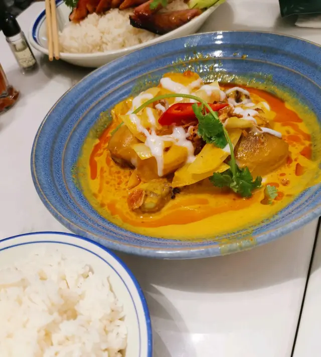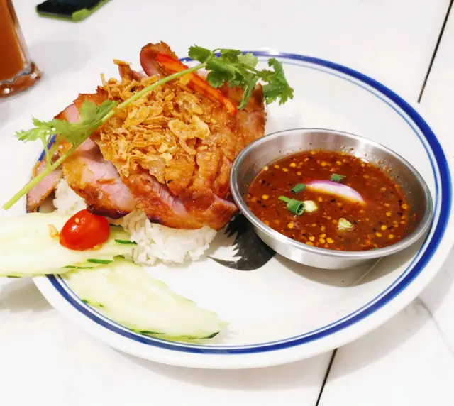 呢間泰菜都係我上次叫外賣才首次嚐過,但發現外賣都有驚喜,所以一定要去試堂食,但因放工後返到荃灣都 8 點多,每次去到都已大排長龍在外邊等位,而因限聚令到晩上十點,所以都未能嚐到堂食。今日終於嚐到了,午餐時段會好些,我和 2 位朋友 11幾就排隊等,所以終於食到了。我地叫咗午市套餐 #泰式豬頸肉飯 #泰式無骨鹵水豬手飯 #黃咖喱雞飯 #炸蝦餅 #串燒 #泰式凍奶茶 #泰式西柚茶 #泰式青檸茶。樣樣都好好味😋,有水準💯,同埋好大碟😄,推介豬頸肉 & 豬手去到真係要必試。呢個價錢真係好抵食👍,小食+主菜+嘢飲🥠🧆🥤,每人都唔駛 $100👍…查看更多