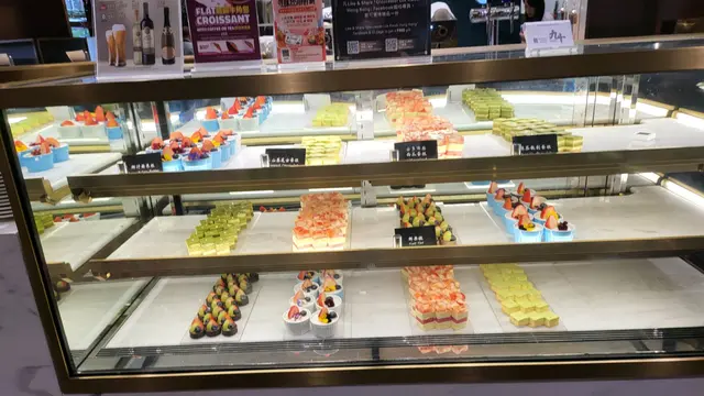,火腿沙律小牛角包,两款冷麵,生果,各款小蛋糕有十多樣種類,有即場制珍珠奶茶班㦸及窩夫