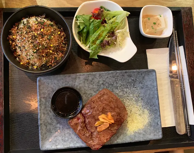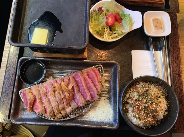 同好姐妹耐無見,一於食餐好。一路都想試,諗住過左午餐時間無咁多人,都排左一陣。各人點了唔同定食都好好食,享受了開心美食時光吉列炸牛扒定食 ($188) 估唔到份量咁多,脆卜卜吉列邊邊,仲可以自己控制成熟程度,肉質鮮嫩唔油膩,齒頰留香,值得一試板腱牛扒定食 ($158) 肉身厚嫩有咬口,牛扒juicy 送飯一流石燒薄切牛肉定食 ($120) 輕輕一煎加上牛油香,帶出牛味,油脂分佈均勻,正所有套餐包括前菜、沙津、主菜同紫菜飯另可加$25有小食…Read More