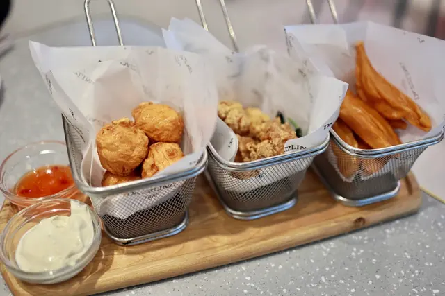 之前去過2次都大排長龍,今次生日終於等到食到了,裝修特別,保留了百子櫃及一些懷舊物,只係食物沒有太大驚喜。大和堂熱狗🌭️配薯條 豬肉腸、肉醬 (牛及豬)、車打芝士,唻到時香氣撲鼻,肉醬跟芝士最佳配搭雞蛋仔與雞 (可選西檸汁或薑汁)炸雞香口,脆皮鬆脆,配上西檸汁開胃醒神,只可惜雞蛋仔一凍就淋了西班牙油炸鬼伴雪糕西班牙油炸鬼新鮮即炸,食時仲熱,配埋雪糕口感豐富,如果雪糕球再多一個更完美😋自家製黑糖青檸湯力招牌之一,推薦,酸酸甜甜,味道調和,誰也搶不了誰的味道💕啡走咖啡味不是太突出,不過不失的鮮奶咖啡餐牌上的食物算多,而且有素食漢堡,有機會可以再去多次的…Read More