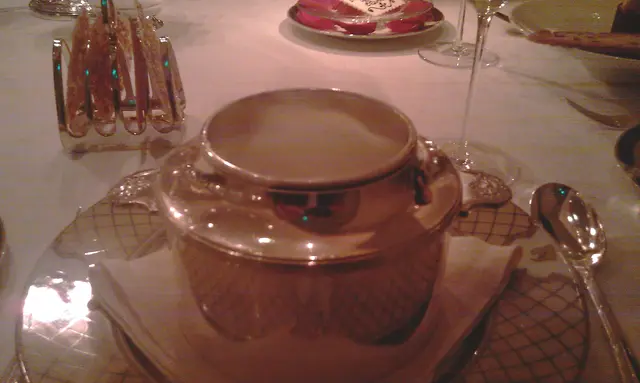 星期五,天色十分好。筆者請了一天假,與太座過大海輕鬆一吓。當然輕鬆嘅方法並非過過手癮,而是口癮。今次嘅主角係今年澳門米芝蓮三星食肆,位於葡京嘅盧貝松。是兩星期前作出的安排,有Gaddi's的珠玉在前,背負Robuchon嘅大名,令人期待。預約了十二時半午飯時段,準時到達。位於集酒色財氣於一身、但顯得老態龍鍾嘅葡京,一間講求優雅的法國餐廳,有點格格不入。餐廳主調色是藍色,是高貴典雅嘅象徵。論環境,沒有Gaddi's的華麗,空間感亦因樓底嘅限制,有所欠缺。細看之下,餐具是Christofle,可是滿臉風霜,在這種級數的餐廳,是有點出人意表。麵包籃新鮮出爐,有五、六款提供,熱辣辣,差不到那裡去。不過有點烘得過了火,表層不夠鬆脆,比Gaddi's是起碼遜一籌;牛油在餐車上呈柱狀,由服務員於客人前用刀片刮在牛油碟上。香味十分淡,入口亦沒有預期之牛奶酥香,整體來說,是有一些失望。未上頭盤,先來一客醒胃的青蘋果mousse,雪得冰凍一點,令青蘋果的清新更加突出。除了青蘋果蓉之外,原來還將西芹切成細細粒,可口非常,亦為之後的大餐作了最好嘅準備。筆者的前菜是釀菌(L'œuf de poule japonais),在菌上主要釀了慢煮日本蛋,口感是出奇的creamy,味濃而不溜,嫌味太濃的,呷一口伴碟的火箭菜,平衡得恰到好處。溫度是微微凍了一點,可能是三、兩度,可以好一點。筆者一如之前在Gaddi's嘅選擇,點了羊鞍肉(L'agneau)。論羊鞍嘅質素,是幾乎沒有可以挑剔之處;火喉剛好,肉色呈嫩粉紅,肉質幼滑。嗜羊嘅筆者,嫌羊鞍肉嫩滑之餘,羶味不足。相比起Gaddi's(詳情見另文),不可說遜色,但是少了一份驚喜。飽嚐美食後,又是最令女士們神魂顛倒的甜品時間。dessert trolley一出,琳瑯滿目,相信沒有一位正常嘅雌性物體可以抗拒的。款款甜品皆做得十分美侖美奐,種種皆想試一口,可惜每個午餐只可選三款而已。萬個不願,也要做痛苦嘅決定。側聞鄰桌點了拿破崙蛋糕,服務員手起刀落。裂帛般的聲音,光是此也可知此甜品是必食之選。另外是選了苞芙及朱古力撻,也是可口非常,是女士們嘅天堂。只是服務員大意了,事後才知有雪糕可供選擇,太座氣惱不已,「敦促」筆者一定要反映。除了在顧客意見卡反映之外,「服務」一欄也扣了一分。午市嘅3-course set是十分抵食的($398 + 10% service charge)。因為飲了香檳,每人再加多二百蚊,這種級數,都唔算貴。在此謝過多年來贊助不少嘅賭客。更多資料可於以下網址瀏覽:http://kenluihy.blogspot.com/2010/12/robuchon-galera.html…Read More