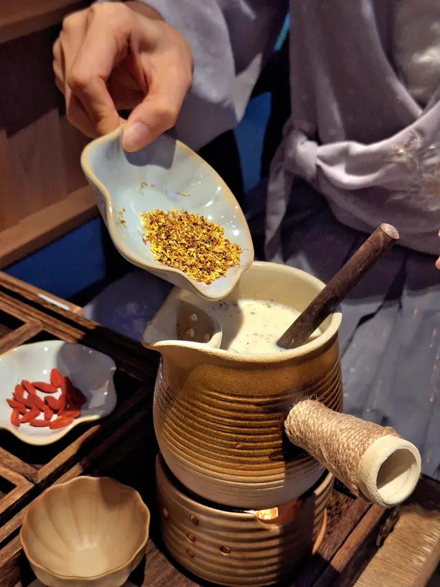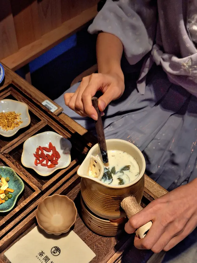 小編上星期約咗一位好耐冇見面嘅朋友去飲下午茶,順便傾下近況。我哋都希望可以有一個寧靜舒適嘅環境度過一個下晝,所以我哋決定去飲茶。我哋見到有一間主打中式茶茗位於啟岸巷子,同時有一間cafe都好出名,所以我哋決定去完cafe之後就想樓上品茶。入到門口就已經聞到茶葉嘅香味,環境都好舒服,感受到慢活同me time。朋友見到有烤茶同土耳其茶覺得驚喜,可惜土耳其茶壺數量有限,所以我哋最後都叫咗烤茶同三泡茶。店員需要準備茶葉同泡茶,所以等待時間比較長,好適合我哋邊傾計等待。桂花罐罐烤奶呢間店鋪用嘅牛奶係嚟自香港本地常見品牌,同大陸用奶粉沖水嘅牛奶唔一樣,所以小編朋友係有驚喜同期待。烤奶嘅特別之處,就係俾你體驗自己放配料同不停攪拌牛奶, 俾你有一個儀式感。配料有桂花、杞子同紅棗粒,桂花味比較突出,多咗一份清新。個人意見,小編覺得紅棗可以剪成一塊塊,再放入去牛奶,咁會容易突出味道。玫瑰三炮台配料主要有綠茶葉、玫瑰、杞子同紅棗。店員會將100度溫度熱水倒入去,然後焗四分鐘。店員另外都解釋茶底會比較苦,所以都準備咗冰糖。小編個人覺得甘味比苦味比較突出,可接受唔加冰糖。小編都幾鍾意每飲一啖都會聞到茶葉同玫瑰花嘅香味,令人覺得身心舒服。玫瑰甜醅子乳酪我哋第一次聽甜醅子,據店員解釋,甜醅子係由米、湯同水發酵而成。口感有啲似紫米,中和咗乳酪嘅酸味。玫瑰花凍有啖啖花香味,口感都唔會好硬,整體配搭頗新鮮,份量可以二人分享,咁就可以花多啲時間品茶🤣茶閒裡馬頭圍道63號啟岸1樓104號舖#紅磡美食 #休閒品茶 #品茶 #泡茶 #foodie…Read More