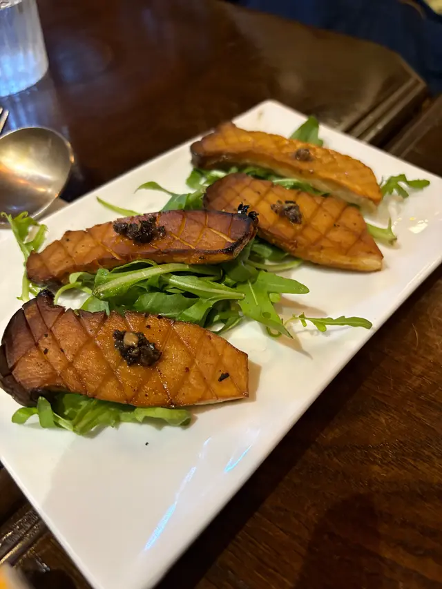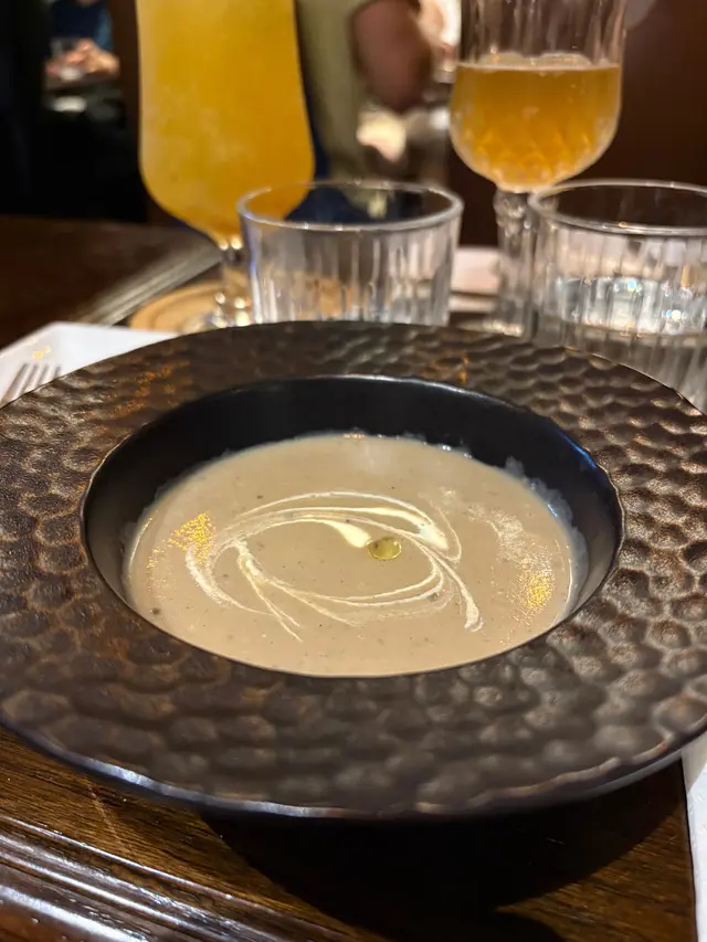 由welcome food到甜品都很驚喜。每道菜都用心製作。只有12個座位,所以一定要預先訂位,因為只得一位廚師,菜與菜之間需要耐心等候,有啲似食法國菜😂Welcome food 係燒香菇,菇味濃厚。頭盤選了凱撒沙律、秘魯牛心串燒、鵝肝多士及香煎蟹餅。馬上想重點一次,因為真係好好味。主菜點了牛肉眼,豬肉眼,墨汁帶子意大利飯及昆布蜆肉意粉,每道主菜都各有特色。豬肉眼老闆建議選7成熟,真係肉汁會更豐富。墨汁帶子意大利飯真係誠意之作,上枱時如藝術品,墨汁飯配上金黃色的煎帶子,色香味俱全。必會再次光顧👍👍…Read More