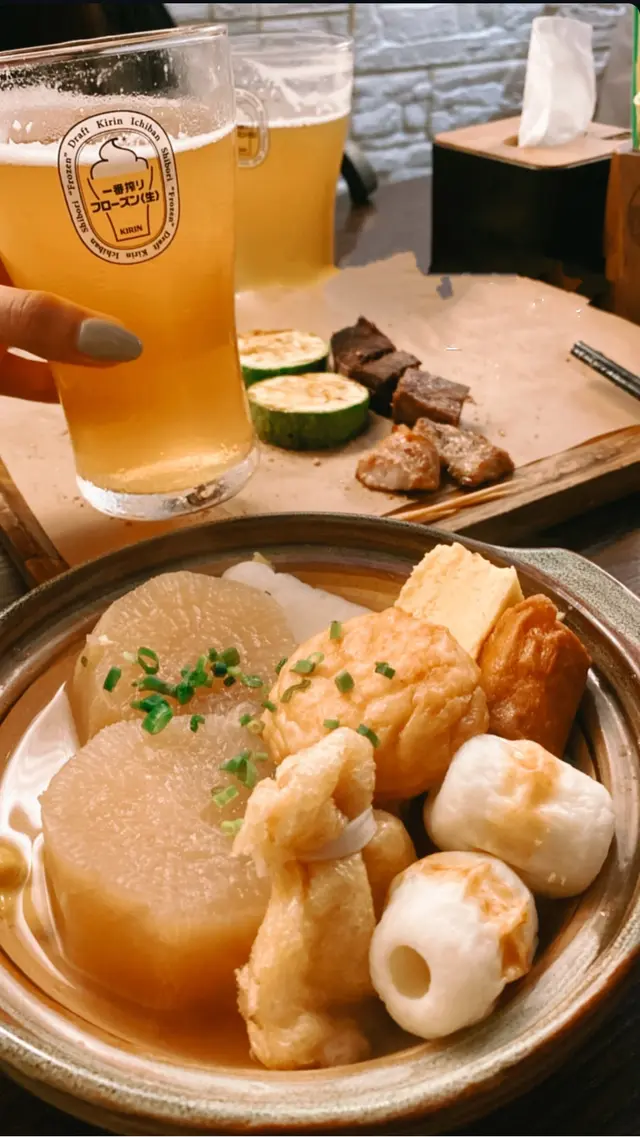 同兩個朋友喺北角搵地方食野傾計又唔想去北角匯食連鎖店行下行下就搵到呢間頗為隱藏既小店但係原來同北角站十分近 超級方便欣賞佢哋原來除咗有串燒 手工啤之外仲可以叫埋隔離舖嘅日式居酒屋關東煮過嚟食串燒我哋叫咗十款左右 大推 燒牛舌心 燒白鱔 燒菠蘿仲有一款係從未喺出面食過既菜式 由一大塊雞皮包住墨魚滑一齊燒 口感又脆又彈牙關東煮嘅蘿蔔都非常之入味 有少少濕嘅食物感覺無咁熱氣😂試咗一款檸檬味既啤酒 好清新好易入口同朋友們邊飲邊食邊傾 都係人頭唔洗$300都已經唔洗再搵下場☺️👍🏼👍🏼👍🏼…Read More