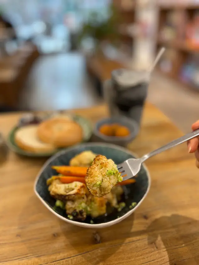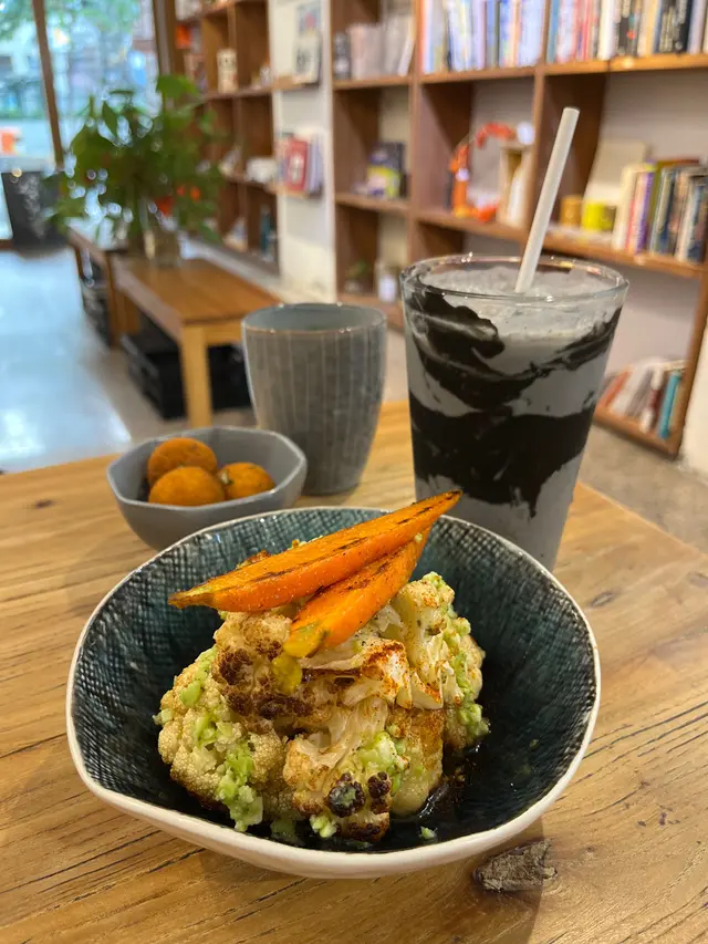 呢間素食cafe bookmark已久!假期同朋友黎食brunch,果然無失望!每道菜都係色香味俱全嘅藝術品,完全顛覆咗我對素食嘅印象!十二種蔬菜開心果醬貝果全日早餐一上枱就俾佢嘅色彩吸引住!貝果烘得外脆內煙韌,塗滿濃郁自家製開心果醬,堅果香氣濃郁。旁邊嘅十二種蔬菜新鮮爽脆,配上炒菇同薑黃豆腐,營養滿分!高蛋白質本地有機莧菜青醬鷹嘴豆泥碗幼滑鷹嘴豆泥配上本地有機莧菜青醬,味道清新獨特。碗裡有齊牛油果同各種烤蔬菜,口感層次豐富。配埋外脆內軟嘅酸種麵包,蘸嚟食真係一絕,飽足感十足又零罪惡感!黑松露枝豆醬烤椰菜花呢個小食絕對係驚喜!烤椰菜花外層香脆,鎖住juicy。黑松露醬混入枝豆,多咗份豆香同綿密感,松露香氣濃郁得嚟好溫和,食到停唔到口!超級能量黑芝麻蛋白質特飲賣相已經好IGable!入口係濃厚黑芝麻香味,口感順滑。唔會太甜,健康又好味!酸種貝果配果醬既純素芝士貝果口感煙韌,帶微酸味,配上純素芝士,甜甜地,好夾!香芋蕃薯波波外層炸得金黃香脆,內裡煙韌,仲有滿滿香芋蓉,唔會太甜,酥脆唔油膩!…Read More
