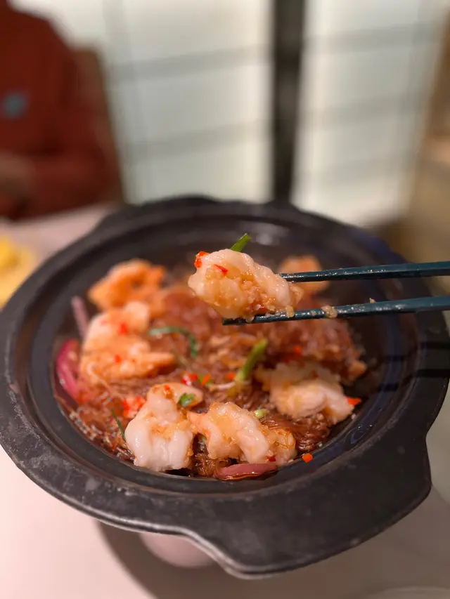 呢間內地人氣江浙菜過江龍,一直以特色手工菜同獨特環境作賣點。餐廳裝修充滿江南水鄉風情,木系枱櫈、亭台樓閣嘅設計,燈光偏暗幾有情調。龍井烤雞招牌必點!外皮烤到金黃香脆,肉質嫩滑多汁,帶有淡淡茶香。粉絲裹蝦開蓋蒜香撲鼻!蝦仁數量唔算好多,但勝在夠大隻同爽口彈牙。精華在於底下嘅粉絲,完全吸收咗蒜蓉、蝦汁同醬油嘅味道,超級入!送飯一流。蝦米絲瓜絲瓜清甜,燜得軟腍。蝦米嘅鹹香起到提鮮作用,成道菜感覺好清爽健康。狀元芋頭煲身為芋頭控,呢個真係大推!芋頭片燜得軟糯,入口即化,完全吸收咗醬油同肉汁嘅精華,味道鹹中帶甜,非常濃郁。芋頭片夾著五花肉,增添油香。砂鍋西施豆腐用砂鍋上依然保持到溫度。豆腐口感嫩滑,湯汁鮮味,係一道清淡得來又唔會寡嘅菜式,特別適合長輩同小朋友。三色雞絲涼麵夏日必點!賣相好色彩繽紛。麵條口感爽彈,配上青瓜絲、紅蘿蔔絲同雞絲、麻辣醬汁,撈勻之後食好清爽,辣辣地好過癮。楊枝甘露奶凍將楊枝甘露倒入幼滑嘅奶凍上面。奶凍口感細滑,配上香甜芒果肉、柚子肉,口感層次豐富。…Read More