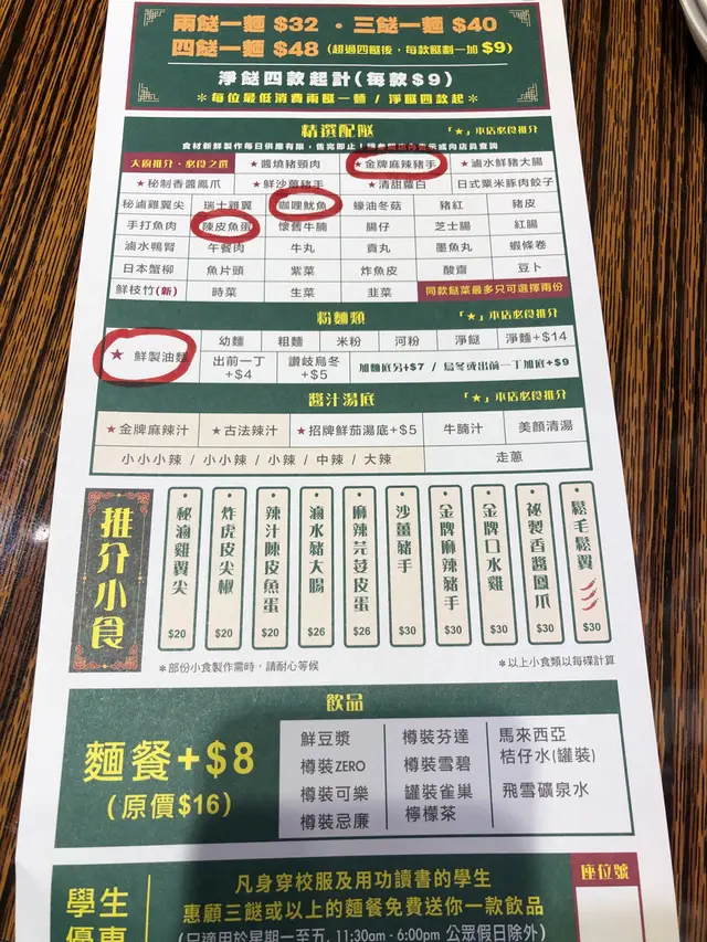 第2次食餐廳位於荃灣地鐵站附近,步行5分鐘便到。門口有紙填上資料登記入餐廳裡自己圈上想食既食物便可以交給店員下單有分2/3/4個餸餐,飲品另外加錢。內有口罩袋自助-金牌麻辣豬手,很淋,同入味-醬燒豬頸肉,質肉都脆口,同入味-陳皮魚蛋,有陳皮味-滷水豬大腸,滷水味足,同埋夠淋-蝦條卷,手打魚肉,正正常常-湯底,叫左金牌麻辣汁,選了小小辣,有麻同辣味;辣度都幾勁,建議配上一杯凍豆漿可以解下辣。-每碗都會配上一塊生菜平時少食車仔麵,但呢間湯底不錯,而且配料都不錯…Read More