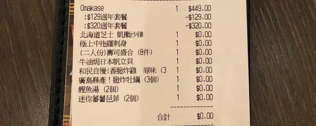 網上做緊週年優惠普通和民Omakase 連加1,$352,二人份量提早book定左位,入到店鋪同店員講返有coupon 入返個code就可以享用呢個set -沙律最好味,爽口既菜-拖羅刺身,未解凍,食落去好生凍,麻麻-右上角,廣島蠔,脆口既,唔腥,但就無乜味-右下角,炸雞,脆口既,肉質滑,但味道麻麻-左上角,加錢叫左支sake$69,樽外表好靚,但味道飲落去似飲緊有酒味既水,好啖。麻麻-焗帆立貝,新鮮出黎熱騰騰,係有牛油既,但一陣就濃左,及咬落去口感很爛,不好食。-滿心期待壽司盛合🥲原本第1次拎出黎盛合拖羅是黑黑地,三文魚上有幾粒黑點,糾結咗一陣,決定問返店員係咪正常,最後店員換返左碟正常既比我地。除了換返既拖羅外,其他食物賣相都不吸引,味道都超麻麻,赤蝦帆立貝正常;第1次食玉子壽司食落質感係淋散🥲-迷李芭菲,蕃薯還好,蛋糕偏甜,杯底裡有甜粟米片,岩d好鐘意食甜野既人。唔知係咪因為套餐關係,食物質量差左🥲最後整餐食了$352+76=$428,失望,應該會是最後一次食🥲…Read More