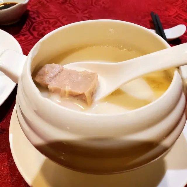 位於大圍的新強記,最出名的就是燒乳鴿和雞粥,所以我們一定會叫這兩款食物。這間酒樓已開業多年,酒樓內有一幅桂林山水的風景畫,點心種類多,而且大件。我們約11時半落單,但等了半小時才有點心,傳菜員說要慢工出細貨,我們叫了香蔥煎薄餅,和煎苧絲,薄餅煎得剛剛好,入口香脆,煎苧絲一點不油膩。接著便是乳鴿,它燒得不過火,皮脆肉嫩多汁,即使一人一隻也可以吃掉,雞粥我們是叫例牌的,但也有一大湯碗,我們四人平均每人可以吃到兩碗多,而且雞肉多,鹹菜胡椒豬肚湯是一個鍋,內有很多腐竹,湯味濃郁,豬肚稔,每人也吃到兩碗,我們還吃了韮菜豬紅和燒腩仔,也很好味,不會太鹹。這一餐我們全吃清光,而且非常滿足,還笑說可以再約在此吃晚飯。…Read More