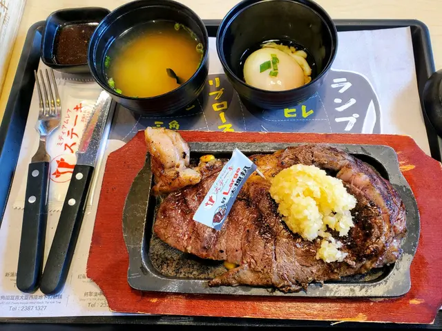 這間日式餐廳位於屯門,附近全是住宅區,相信生意不錯,餐廳面積一般,門口玻璃窗有一隻很大的牛頭輪廓。進入餐廳,在近門口的玻璃櫃擺放了牛的不同部位的肉,讓你可以考慮清楚揀吃哪部位,面向門口的一大幅牆則有一隻牛,用透視圖介紹全隻牛的不同部位。這間餐廳的特色是將你點叫的牛排用重量計算價錢,我選了西冷部位,之後便揀蔥或蒜頭配料,另外我揀了溫泉蛋,麵豉湯和雪糕,揀定後便要自己去櫃面落單,我們約等了15分鐘便去櫃面取食物。餐一上枱,鐵板的熱力使牛排發出響亮的滋滋聲,伴隨著蒜頭在空氣中散發的香氣,使人不禁垂涎三尺,我首先吃了大大的溫泉蛋,然後喝麵鼓湯,最後便是慢慢細嚐西冷牛排,牛排有三百多克,所以份量是很夠的,除了有少許粟米粒墊底便沒有其他配菜,餐廳亦提供了醬汁供醮牛排,牛排味道不錯,吃飽了牛排便輪到雪糕,是一個完美的結局。一個餐平均約250,大家喜歡吃牛的話,不妨試試。…Read More