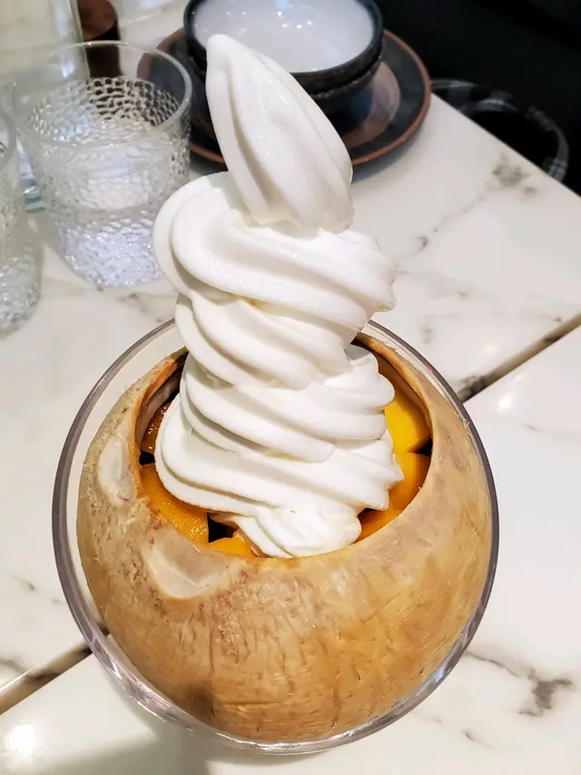 這間素食西餐廳位於灣仔,前身是灣仔舊街市,現在是三級保護歷史建築物。由於活化舊街市,被OVO Group投得,內有OVO家具店,花藝店和餐廳。一入門口是鋪滿牆壁的綠草,右面有一道樓梯,兩旁都攞滿了美麗的盆栽和植物,餐廳的一角也擺設了蘭花和很多小盆栽,樓底十分高,設計師就善用這空間,吊掛了很有特色的裝飾,不少食客都忙於在各處打卡。餐廳雖然是素食,但款式多和新派,我們揀了JUMBO SET, 餐廳很有心思,用了多邊形的餐盆放上前菜,小食和新鮮水果,前菜是鮮甜的蔬菜湯,將蕃茄,紅蘿蔔,西芹等蔬菜打成溶混合配以黑椒,所以湯十分清甜。小食是芝士流心蛋粟米大啡菇,大而鮮紅的流心蛋放在碗型的啡菇上,令人垂涎三尺,味道很夾。主菜是芝士牛肝菌意粉,也很好味。此外,我們還吃了四重芝士肉醬流心蛋意粉,那些肉碎與新鮮肉口感很相近,你不會以為在吃素,配以芝士和蛋混合來吃,令你回味無窮。甜品我們揀了有特色的芒果爺爺,它是用椰皇水配以寒天冷凍配以芒果放在椰皇內,再加上北海道3.6牛乳的軟雪糕,甜味剛剛好,雪糕香滑,是一款很好味的甜品,值得推介。想不到平時不吃素的我,這一餐使我吃得樂透,每一款食物由選料,烹調,設計和配搭都見有心思,而餐廳的氛圍讓你會放鬆心情,要細細品嚐食物,這一餐我帶著一份感恩和與自然結合的心去享受美食。…Read More