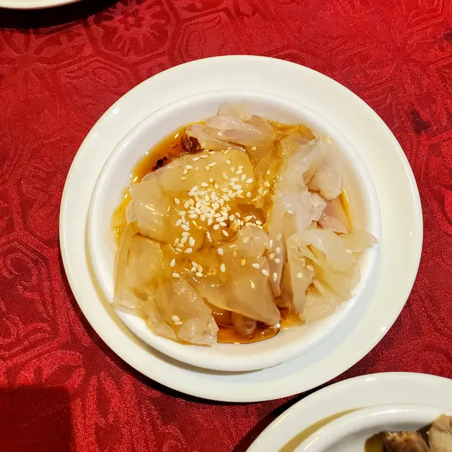 十三少有幾間分店,今天光顧的是樂富分店,食店面積不算大,但卡位十分寬敞,沒有局促的感覺,食店的牆上有幾幅大的食物相片,很是吸引。我叫了口水雞,炸饅頭和凍桂花烏龍茶。口水雞端上來,每件雞上都鋪滿白芝麻,而雞肉是浸在辣的紅油上,顏色美麗,雞肉十分嫩滑,而且不會太辣,我這個不太吃得辣的人都能接受,除了雞,還附有青瓜浸在碟內,這間食店的口水雞較其他食店有水準。炸饅頭冇得彈,饅頭是熱辣辣的,外皮炸成啡黃色,咬下去皮脆肉鬆軟,也是有水準的食物。再嘆一杯凍的桂花烏龍茶,去中和口水雞的辣和炸饅頭的熱,非常匹配。這間分店還有很多推介的川菜,下次可以試其他食物。…Read More