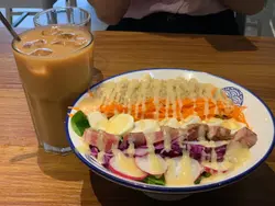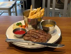 今日為同朋友慶生所以揀左呢個cafe試試。呢間唔收切餅費用,我地覺得很好。由於我地有兩人,可以叫的野食唔多。餐牌上的選擇都多, 由前菜到甜品可以揀的不少。 我見食評上幾多人讚牛扒好食。 所以叫了一份牛扒, 一個沙律 以及 明太子意粉。呢個沙律唔錯, 足料😻而牛扒就揀左安格斯牛 ,5成熟,肉質幾嫩,而且牛味突出, 無令我失望。大家下次都可以試下呢間,食物質素高而且唔太貴