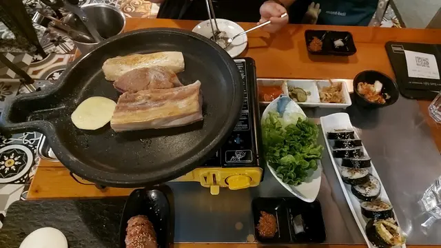今晚試左尖沙咀chumchummi ,入到去都覺得伏伏地,成班菲律賓人,又話有oppa, 等左10分鐘一杯水又無,要叫先會比 叫左個420蚊 豬肉餐,賣相唔得 ,一大舊肥豬肉,半片菇,1片薯仔,1舊洋蔥,幾粒蒜頭,泡菜又好酸 酸到牙都痺,燒出黎又un又咸,好難食,職員燒燒下又走鬼左,根本係自己燒自己搞掂 ,都無服務