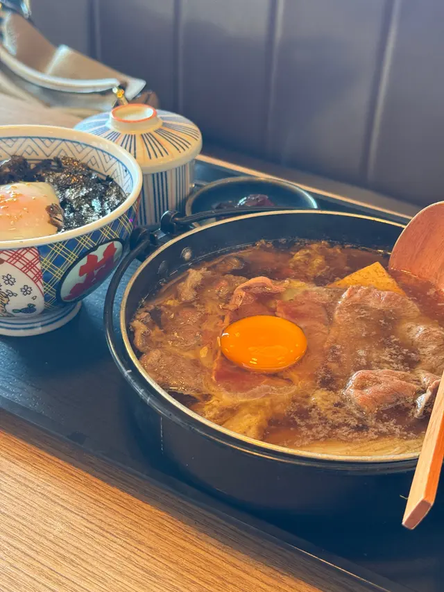 今次同朋友行銅鑼灣,呢間小店門口有啲低調,裝修風格簡約,帶有濃厚嘅和風氣息。點咗兩款主餐,整體體驗唔錯👍刺身三色丼(吞拿魚、三文魚、油甘魚)+ 溫泉蛋三色刺身丼嘅刺身品質相當新鮮,切片厚薄適中,三款刺表現都好好,丼飯粒粒分明🤤加咗隻溫泉蛋,蛋黃流心,拌飯一流,令整碗丼飯更加有層次。牛肉壽喜燒套餐 + 海苔飯 + 溫泉蛋壽喜燒湯底甜鹹適中,牛肉片勁大塊唔欺場,而且油脂好香,煮得剛剛好,嫩滑而不柴。配埋海苔飯,飯香中帶少許鹹香,加埋壽喜燒湯汁後更惹味。再加隻溫泉蛋,一啖飯一啖肉,好滿足! 服務員態度親切,落單速度快,食材介紹詳細。餐廳雖然唔大,但座位好闊落,適合朋友聚餐或者輕鬆用餐。總結表現令人滿意,食材新鮮,性價比高,值得再訪!價錢中等偏高,但以質素計,絕對值得一試。…Read More
