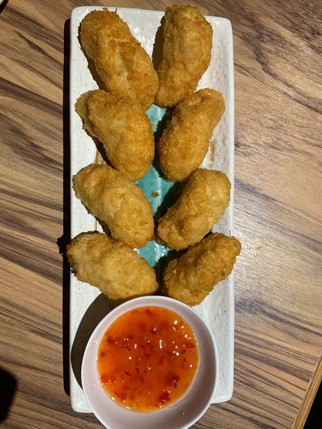 鬼馬雙星,有墨魚或者蝦滑加左上油炸鬼上面,再加埋泰式甜醬,勁好配搭四色餃子拼盤,每一粒都大大粒好足料,入面啲蝦仲要係大大隻好爽口 要encore