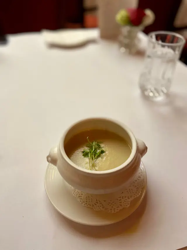 諗起仙后餐廳,就會聯想起已經退咗股嘅張敬軒🎤 一開始認識呢間餐廳都係因為有佢宣傳🤣 餐廳嘅一大賣點係裝修,入到去好似置身一個古老有氣派嘅表演場地咁,有舞台👯‍♀️、有特大水晶燈同彩色玻璃天花,好適合打卡📸餐廳好貼心,訂座後會早一日將你去嗰日嘅菜單WhatsApp俾你睇,實體菜單就好似一張報紙咁嘅樣🗞,幾特別。Lunch set價錢唔過份💵,三道菜HK$258,四道菜HK$298,有部分菜式要加錢。前菜我哋叫咗鴨肝雲吞同大蝦。鴨肝雲吞🥟配上巴馬臣芝士泡沫🧀🫧,同埋一啲菇🍄,味道都唔錯。大蝦🦐配上芒果莎莎🥭、牛油果蓉🥑,味道好清新。是日餐湯係椰菜花湯🥦,都幾好,唔會好似就咁用麵粉開出嚟咁。主菜叫咗和牛面頰🐮同埋雞腿🍗,兩樣都嫩滑。甜品叫咗一個榛子拿破崙🍰配海鹽焦糖雪糕🍦,一個西班牙柿配桂花糖梅酒果凍🍮。前者中間夾住焦糖同榛子,但係唔會太甜。後者就好似食緊好重桂花糖味嘅酒釀丸子咁🍡,各花入各眼啦,我就唔係太欣賞。個lunch set仲包咗咖啡,我叫咗mocha。咖啡都幾好飲,上面印有餐廳名,再襯返個靚靚嘅杯☕️💰: HK$350 pp (Lunch)💝: 7.5/10…Read More