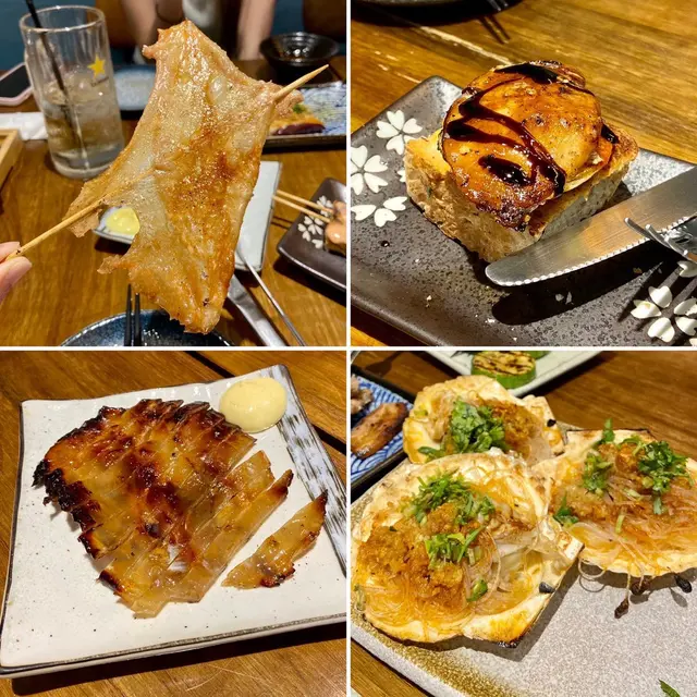 燒烤堂有唔少分店,我去嗰間喺中環九如坊。餐廳細細間,唔係好起眼,但係生意好好。我星期五食7:30pm嗰輪,估唔到前面已經有一輪, 講明我哋9pm要交枱,因為後面仲有一輪,做到11pm。朋友7:15pm到咗,但係餐廳話前面嘅客人未走,結果我哋差唔多7:45pm先入座。餐廳嘅食物都唔錯。當中墨魚滑最好食🦑(第一張圖左上),上面應該係落咗啲鹹蛋黃醬😋 蒜蓉茄子🍆(都係第一張圖左上)都好惹味。另外值得推介嘅仲有免治雞肉串🍖(第一張圖左下)。原塊燒雞皮🐣(第二張圖左上)大大塊,脆卜卜。焦糖青蘋果鵝肝多士🥪(第二張圖右上)個麵包係脆嘅,蘋果🍏同鵝肝嘅味道幾夾。和牛粒🐮味道都幾好,有油香。8:30pm已經last order,但係差唔多9pm第一轉叫嘅食物先嚟齊。侍應好心急咁幾次叫我哋快啲交枱,所以食得有啲倉猝。如果大家係想食住串燒飲吓酒同朋友吹吓水嘅話,燒烤堂就唔適合喇😔💰: HK$700 pp (Dinner)💝: 6.5/10…Read More