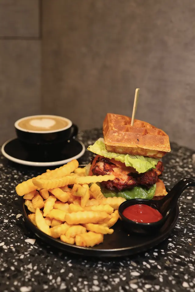 🍽️自家制炸黑炭包豬扒漢堡包雜葉沙律 $98廚師先用一層黑炭色嘅衣包裹著豬扒,再去將佢烹調,形成外面香脆,內裏軟熟,肉質爆棚嘅效果😋配上清新嘅沙律,💯🥰🍽️香煎口水雞扒窩夫 $98 +$22轉配薯條總共有兩層口水雞,非常足料,而且咬落啖啖都充滿肉汁🤤另外佢個醬汁唔會太辣,又足夠惹味,同充滿蛋香嘅窩夫好夾🤩🍽️脆炸蟹仔 $82細細粒嘅蟹仔,非常酥脆,食到停唔到口😋🍽️三重朱古力窩夫 $98朱古力控必點😍窩夫即叫即整,外脆內軟,而且中間係朱古力心太軟🍫配上朱古力雪糕同朱古力碎片,邪惡又滿足🥰☕️Hazelnut Milk $48另含10%服務費✅味道😋 8.5/10性價比💰 7/10環境🔎 7/10服務🫶🏻 7.5/10打卡指數📸 8.5/10٩(˃̶͈̀௰˂̶͈́)و 推薦指數🥰 8/10…Read More