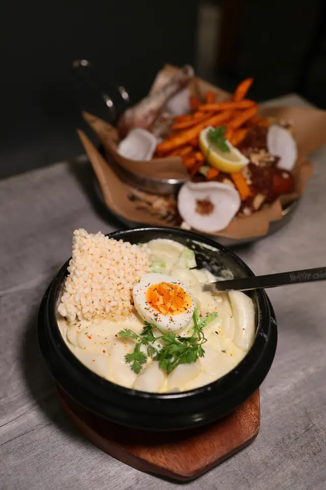 🍽️半半炸雞 $218我哋叫咗蜜味乳酪粉同黃金蒜香味😋炸雞外皮香脆,入面充滿肉汁,好juicy🥰蜜味乳酪粉嘅甜同炸雞好夾,配埋薯粉更加滋味🤤🍽️火灸牛 $98服務員會喺面前用火槍現場火灸,有得睇、有得打卡🤩📸牛肉油脂多,燒得很香;肉味濃郁,醬汁惹味🥰🍽️芝士蟹子蛋捲 $135香滑柔軟嘅蛋捲包住好多蟹子同流心芝士,口感超級豐富😋🍽️卡邦尼年糕 $113年糕有薄身同厚身兩款,口感煙韌🥰配上牛奶味香濃而且勁creamy嘅卡邦尼汁,超級好食🤩🤤🍽️朱古力雪冰 $98🍽️年糕雪冰 $98雪冰質感細滑,一款朱古力味濃郁,甜而不膩☺️另一款有滿滿嘅黃豆粉、同香甜嘅牛奶味,中間仲有好多細粒年糕增添口感😋🍹蜜瓜沙冰 $73🍹香蕉沙冰 $73服務費✅味道😋 9.4/10性價比💰 9.0/10環境🔎 9.2/10服務🫶🏻 8.8/10打卡指數📸 9.0/10٩(˃̶͈̀௰˂̶͈́)و 推薦指數🥰 9.2/10…Read More
