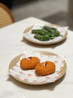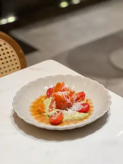 餐廳有2個形象 下午係Cafe 晚上係bar & Restaurant😳今次夜晚到訪 Dinner set包四款頭盤、一個意粉及一個主菜 另可以優惠價加甜品ʕ •ᴥ•ʔ-《頭盤》✨伊比利亞火腿忌廉薯餅✨西班牙青椒仔✨煙三文魚蕃茄牛油果沙律✨蒜片欖油大蝦薯餅有2件 炸得香脆 一咬開有流心忌廉 薯餅中間有伊比利亞火腿 增加鹹香😜青椒仔炸後添加左鹽 爽甜帶鹹感🫑煙三文魚沙律夠新鮮 牛油果打成蓉 幾清新開胃🥑最後大蝦好爽口 -《意粉》主菜有三款選擇 簡左明太子忌廉煙肉菠菜大蝦扁意粉 擺盤靚 蝦有4隻 而且鋪上魚籽 明太子醬汁足 每一條意粉都可以掛到汁🍝《主菜》都係有三款選擇 簡左慢煮焦糖豬腩配香烤飯團及炸藕片 豬腩食落似東坡肉 質感嫩滑 半肥瘦 略鹹左一點 如果淡少少便更好😳飯團有些少飯焦 好香口《甜品》✨焙茶Tiramisù (+$48)焙茶味香濃 Tiramisu夠順滑🥰食落奶味較濃《飲品》✨白晝 ($75)呢杯係白桃、蘋果及紅茶溝埋既Mocktail 飲落好Fresh 甜度適中✨雨林 ($88)抹茶、熱情果、西柚及雲呢拿雪糕溝成 飲落酸酸地 帶少許抹茶苦澀感 味道幾特別🍵Dinner Set💰:$488 (未連加一)…Read More