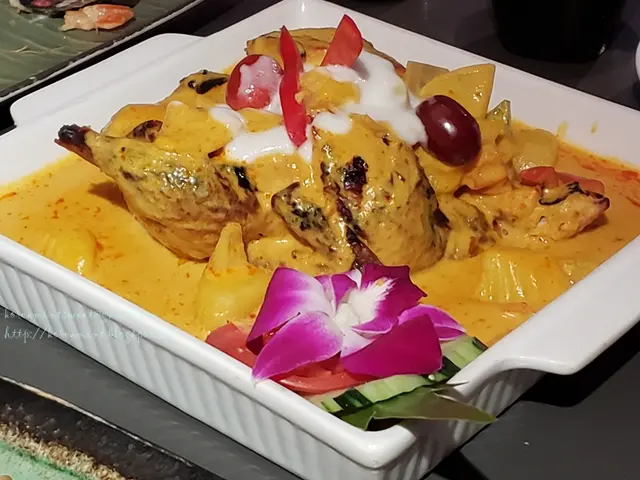 今晚帶大家來到泰國吃一頓豐富又美味的泰國菜,咦!還以為在泰國,原來是裝潢甚有泰國風味的泰國餐館,內進發現一部未載客的泰國的士,紅磚牆隔間每張枱,泰國彿像怎可少,算是走地道親民路線,定還是店主投放了思鄉情懷在此。 有大伙兒開派對的空間,還有兩小口共享美食的座位,悠然自在。 生菜包 生菜包是我每嚐泰國菜必點的,這裡的辣算是數一數二,嗜辣的我更是中正下懷,精神爽利總需要點辣來刺激一下,眼見有洋蔥絲、乾蔥、香茅、辣椒,九層塔,酸酸辣辣豬肉碎被生菜包著同吃,辣度是我認為最能反映泰國菜獨有一面。 原個椰青荔枝湯 每次吃泰國菜,務必一定要來個冬蔭功湯,似乎沒一點新意,今次選了原個椰青荔枝湯,確實有點喜出望外,椰青內不單只有切片椰子肉、雪耳,還有每顆荔枝果肉裹著雞肉,清潤不在下話,肉味不多不少正好起著提味作用。 黃咖哩焗土兵雞(原隻) 士兵雞亦即是咖哩春雞,顧名思義用的雞都要年輕一點,所以油脂分布較少又薄,雞肉嫩滑得不似如期,咖哩味甜多於辣,充滿泛泛椰香,很多人都嚷著為何沒有盛飯伴吃呢! 明爐青檸烤魚 整整一條的烏頭魚放在鍋爐上,熱哄哄的吃起來特別覺得溫暖,芫茜、香茅、指天椒、青檸、紅椒、檸檬葉,蒜頭等等配料,湯汁滲透魚肉,酸辣得宜,容易入口,大小朋友都吃到。 辣與不辣,有商有量,如果你吃不到辣,只能淺嚐的話,可和店員溝通過後,選擇你想要的辣度。…查看更多