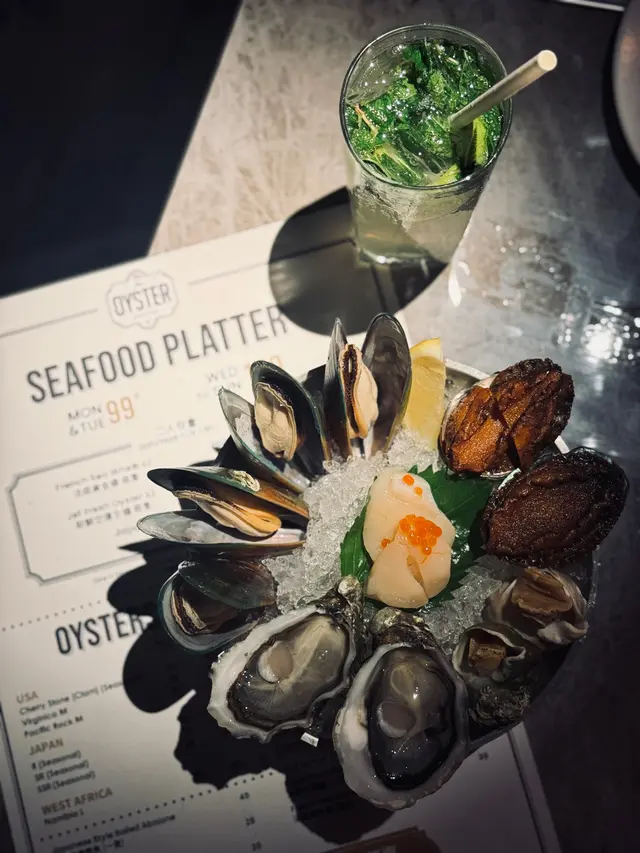 𝔸𝕟 𝕒𝕣𝕣𝕒𝕪 𝕠𝕗 𝕥𝕙𝕖 𝕠𝕔𝕖𝕒𝕟’𝕤 𝕗𝕚𝕟𝕖𝕤𝕥 𝕥𝕣𝕖𝕒𝕤𝕦𝕣𝕖𝕤💎絕對係衝著 $99 海鮮拼盤二人份量而來🙋🏽🙋🏽anyone?! 所以揀星期一🤣~~拼盤有新鮮空運生蠔🦪、法國黃金螺、北海道帶子🍥、紐西蘭青口、日式磯煮鮑魚🤛🏽,咁多咁多性價比爆燈🈵!每款海鮮都好新鮮,食落一d都唔腥,亦唔需要任何調味,喜歡的話加少少檸檬🍋或 tabasco🌶️都可以。當然,嗌杯酒🥂就更加提升體驗啦✨。🐚Seafood Platter | $99US Yellowstone Oyster · French Sea Whelk · Hokkaido Scallop · New Zealand Mussels · JP-style Boiled Abalone鮮海膽米型意粉好可愛,平時唔多餐廳會食到呢種意粉🍝,見到即刻想 order😉。海膽醬濃郁,加埋 topping 既海膽好滋味好啱 feel,整體唔會太膩,想 encore☘️!💫Uni Orzotto | $209辣肉腸 pizza 香噴噴👄,最喜歡薄脆既邊邊😜,辣肉腸、芝士🧀、蕃茄醬🥫餡料均勻;預切左六件,份量剛好🤏🏽。🍕Pepperoni | $169食西餐🍴點可以唔飲返兩杯😆,同朋友一人一杯 cocktail 來個 chill chill Monday🪐,Mojito 薄荷味好出🌿好清新;Margarita 檸檬青檸都好香,杯邊既鹽好 enlightening🌟醒曬!🍹Mojito | $99🍋🟩Lemon & Lime Margarita | $99餐廳燈光唔錯♠️,傾計定打卡都好舒服🕊️。…Read More