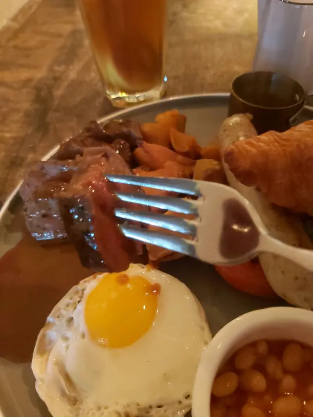 真係有諗過 行完山 會去食咁浪漫的早晚餐我地3人行 都叫左同一個all day breakfast 原因係 呢個set 實在好吸引 又足料, 又豐富,又多元化佢有牛柳 好軟好多汁 有肉香 生熟度剛剛好番薯代替薯仔粒 最啱減肥人士 同減醣人士番薯好甜 好軟牛角包都好好食 環境好浪漫呢間 仲有個半戶外座位俾大家帶寵物一齊玩 好讚…Read More