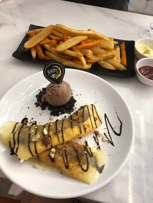 今次叫咗四樣野,榛子醬可麗餅 雙色薯條 同 辣肉腸意粉 同 一杯白牛,驚喜既係四樣野都唔差。咁就跟佢黎餐既次序講啦~首先黎既係辣肉腸意粉[8/10]意粉偏酸幾開胃,辣度岩岩好,讚既係以前食啲意粉成日嫌佢唔夠汁或者好淡味,今次又夠味夠晒汁👍🏻白牛[8/10]係雪碧溝雲呢拿雪糕,特飲黎跟個主食加五蚊就有幾抵飲,本人比較大飲,略嫌唔夠大杯,不過係正常size唔洗擔心太細杯。榛子醬可麗餅[7.5/10]驚喜既係佢連埋啲碎一齊食好正,偏甜唔會過火,會跟一球雪糕,試左朱古力同雲呢拿同個可麗餅都幾夾。雙色薯條[7/10]薯條+蕃薯條既組合,薯條幾好食,不過蕃薯條就比較普通,如果早啲上餐會開心啲,因為岩岩炸起太熱啦。…Read More