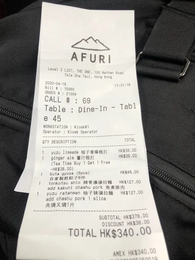 今天和朋友到尖沙咀The One 的AFURI 食下午茶,但是真的很難食,我的豬骨濃湯拉麵🍜湯底味帶微燶味又唔香,出前一丁的豬骨濃湯拉麵比它好吃得多,至於朋友的柚子辣湯拉麵更差,湯底清淡如水,帶微辣及苦味,角煮豚肉是比較好少少,飲品ok,但自家掣煎餃子沒什麼香味,拉麵的叉燒亦淡而無味略帶燶味,朋友吃了很害怕自己的味覺出現問題中左招㖭😂😂(肺炎)兩人下午茶吃了$340,味道好還可以,但味道不好真是不值,給了我們三張$30 coupon,但可是沒有下次,coupon都掉得…Read More