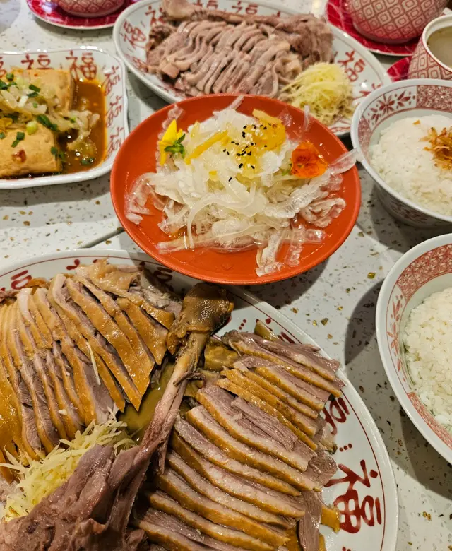 台灣必比登推介名店「阿城鵝肉」首度進駐香港登陸九龍灣, 正宗台灣米芝蓮風味襲港!「煙燻鵝半隻」鵝皮泛著赤褐色琥珀光澤,刀鋒劃下時脆裂聲清晰可聞。嚴選90日齡台灣白羅曼鵝,以紅糖、茶葉、米糠燻製三小時,燻香鑽入鵝肉纖維深處。入口先是焦糖甜香,繼而鵝油醇厚漫開,腿肉嫩滑如絲綢,胸肉緊實帶嚼勁。「白滷水鵝後段」取油脂豐腴的鵝臀連腿部位,浸於陳年白滷水慢煮。湯底以豬骨、鵝架、蔬果熬製,未加醬油故稱「白滷」。鵝肉切面透著粉嫩肌理,齒尖輕壓即溢出清雅肉香。「台灣香腸三拼」辣味、杏鮑菇、檸檬香腸,杏鮑菇入腸,減油膩添堅果香,清爽多層次,健康美味新選擇。「滷味三絕」- 鵝粉肝:厚切,中心維持溏心質地。入口化作鵝肝慕斯,脂香縈喉。 - 鵝心:咬下脆彈爆汁,內臟腥氣盡褪,獨留甘韻回喉。 - 鵝蛋:蛋白如茶葉蛋般龜裂紋理,蛋黃呈半凝固溏心。滷香滲透蛋體,佐秘製椒鹽堪稱靈魂搭配。「麻辣臭豆腐」手工板豆腐發酵三日,孔洞吸飽漢方花椒湯汁。初嘗豆香撲鼻,後勁麻香竄腦,配醃漬高麗菜解膩。 「蜂蜜柚子白涼瓜」翡翠薄片冰鎮透心,台灣文旦蜜漬醬澆淋,苦甘交錯如初戀。 「藥膳鵝骨湯」當歸、枸杞與鵝掌慢燉四小時,膠質濃稠掛唇。湯色金黃透亮,藥香溫潤入魂。「鵝油拌飯」陶碗盛裝台梗九號米,澆上每日現煉鵝油。金黃脂液裹覆米粒,拌入炸紅蔥酥與鵝油渣,脆響聲中釋放堅果焦香。扒飯時鵝香洶湧襲來,樸實滋味竟成席間最快清盤的邪惡存在。「花雕醉香鮑魚」選南非四頭鮑,以陳年紹興酒浸足三日,彈牙間滲出酒韻;「台灣一品煲」集鵝血糕、彈牙鵝腸、濕潤臭豆腐、爽脆酸菜、清甜鮮竹筍與清雅菲菜,食材間交織出軟嫩、彈牙與清爽的多重口感,材料豐富,麻辣中帶甜香。人均消費約$200,即可體驗米芝蓮級台灣鵝饌,性價比極高!…查看更多