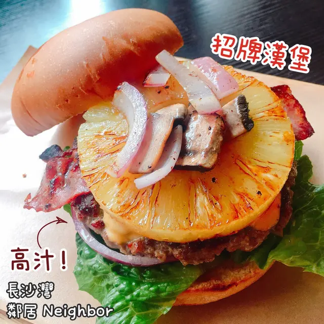去到剛好十二點半,店裡的漢堡都是即叫即製~但其實也不用等太久,大概10分鐘就有了~.🍔鄰居漢堡$62🍔早餐吃太飽,所以只單點了一個招牌漢堡~份量頗大,超厚,一口絕對不能咬下全部料😳先說漢堡包,温熱柔軟的質感,吃起來一點也不乾❤️漢堡排也是,雖然不到超級juicy,但也是中上水準~肉味夠香,煎得好,配上酸甜菠蘿,感覺清爽不少👍🏻Cheddar🧀的存在感不算很強烈,但這樣剛好不會太膩~夾層還有煙肉,不算油膩,煎到微微焦香🥰另外還有蘑菇和番茄洋蔥生菜,新鮮度💯.每層分開來說不算令人驚艷,但搭配起來意外的出色❤️感覺有在用心經營,製作不馬虎🥰.食物質素: 🌕🌕🌕🌕🌘食物顏值: 🌕🌕🌕🌕🌘性價比: 🌕🌕🌕🌕🌑回頭率: 🌕🌕🌕🌕🌘…Read More