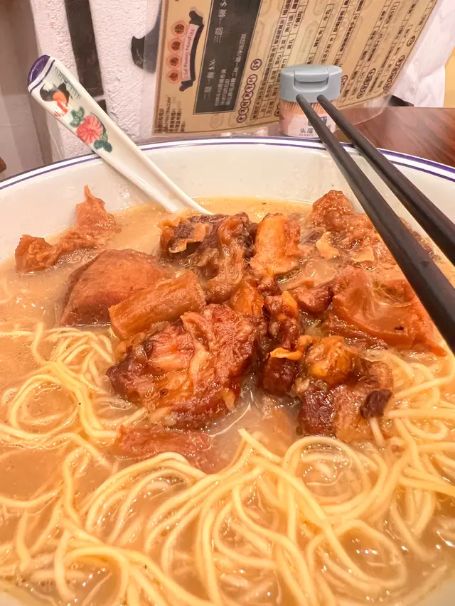 元朗實在太多好嘢食,下午同朋友周圍行覓食。巧遇老馮餐廳,侍應姐姐好熱情咁向企喺舖頭出邊嘅我哋揮手同埋話俾我哋聽下午茶叫野食有免費飲品。我同友人都覺得又吸引,不過都係行咗個隔離舖頭望吓,點知隔籬舖頭對我哋是如不見,所以我哋都係行返轉頭搵呢位熱情嘅侍應生姐姐試食佢哋嘅麵。🥢🍽️🥣舖頭格局,非常復古,有着好多唔同嘅舊時代特色,十分特別又有趣,明顯地係花咗啲心思去佈置。🏠食品方便我反而有啲保留,原以為係港式茶餐廳裏面車仔麵果啲friend,可惜點左佢嘅牛腩麵品嚐過後,感到似曾相識,同台灣牛肉麵相若,連豬紅同牛腩都係帶甜。我本身比較鍾意港式牛腩粥粉麵style,所以呢種調味並非本人喜愛,如大家鍾意台式牛肉麵,呢個係一個好嘅選擇。不過要讚一下個鮮蝦雲吞,鮮蝦彈口🍤😊,$15兩隻。大腸 not bad 夠乾淨乾身。點餐方面係自己用二維碼掃,跟住落order。我哋比較笨,所以請侍應生姐姐幫忙落單。朋友嗌咗幾樣餸嘅車仔麵,買單最後埋單先知4餸湯麵嘅計法,我哋有啲弱,唔識計。😅…Read More