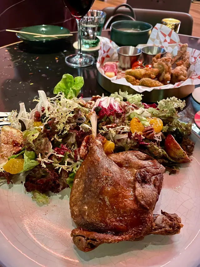 Lost star在大角咀時已經有幫襯。美食加live music, 而且非常尊重表演者, 很好的用餐經驗。終於等到Lost Star在尖沙咀重開,立即來支持一下。餐牌介紹Lost Star由來,有心思餐廳已L形佈局,表演台在L形中間的角落,三角形的,比大角咀的小。窗外的商場螢幕太光,有點影響整體觀感。How Long Will I Love You - $168先來杯signature cocktail,有菠蘿、紅苺,很refreshing,適合炎炎夏日。We Found Love $138另一杯味道較清,淡淡的荔枝味,還是喜歡How Long Will I Love You.Lost Star精選小食拼盤 $268有巴馬火腿哈蜜瓜、單骨棒棒雞、炸牛油果、串燒牛粒、番茄串。份量3人也夠吃,配酒一流。最喜歡這個炸牛油果。香脆炸漿包埋半溶牛油果,口感軟熟,出奇的好吃!Ribeye Set Dinner $288喜歡吃牛的朋友有福了。Ribeye +餐湯 +杯紅酒只需$288牛扒有點太熟。慢煮法國鴨腿 $298A la carte的份量也不少!比手掌更大隻的油封鴨腿,配上半隻碟咁多的沙律,男士也未必食得晒。鴨腿外酥內嫩,回味無窮。無花果蜜柑合桃沙律也剛好平衡鴨腿的油膩。合桃增加脆脆口感,更是畫龍點睛。Tiramisu - $158最後甜品來個Tiramisu 。Tiramisu以杯上,有咖啡酒香,味道不錯。但質地偏流心,不是我杯茶。食物質素一如往常的好食。這個價錢,如果有埋live music更加吸引。可以試試邀請busker,讓他們有更多機會表演也不錯。…查看更多