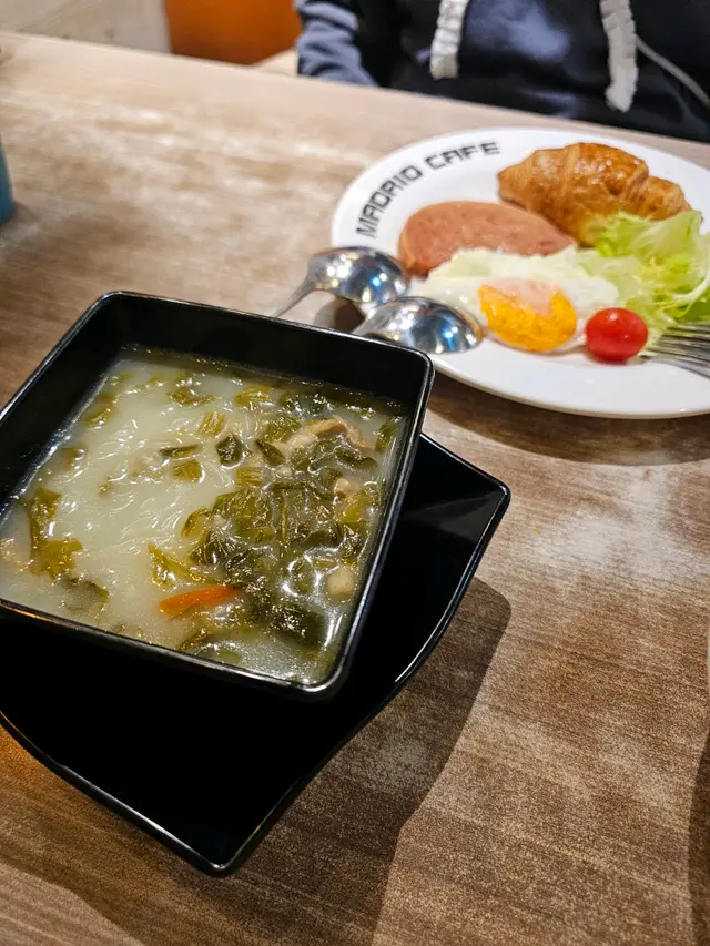今日同老婆去到深水埗食早餐, 見到呢間開咗好多年嘅餐廳, 諗住簡簡單單食早餐但係非常有驚喜🥰🥰我叫咗一個沙爹牛肉麵再配餐蛋牛角包, 太太就叫咗個 沙律蛋牛角包再配 雪菜肉絲米😊😊沙律蛋牛角包超有驚喜😋😋 又脆口 又有牛油香, 沙律蛋溝埋一齊 外脆內軟😍😍 好似麵包舖買嘅一樣好味, 牛角包再配好多沙律, 雪菜米粉都好高質😚😚沙爹牛肉麵就幾好食,😋😋細件嘅牛角包都幾好食我覺得呢間餐廳都好有誠意, 好少食到早餐有咁高質, 最值得一讚係所有員工服務態度都好好 所以下次都會再食🤩🤩…Read More