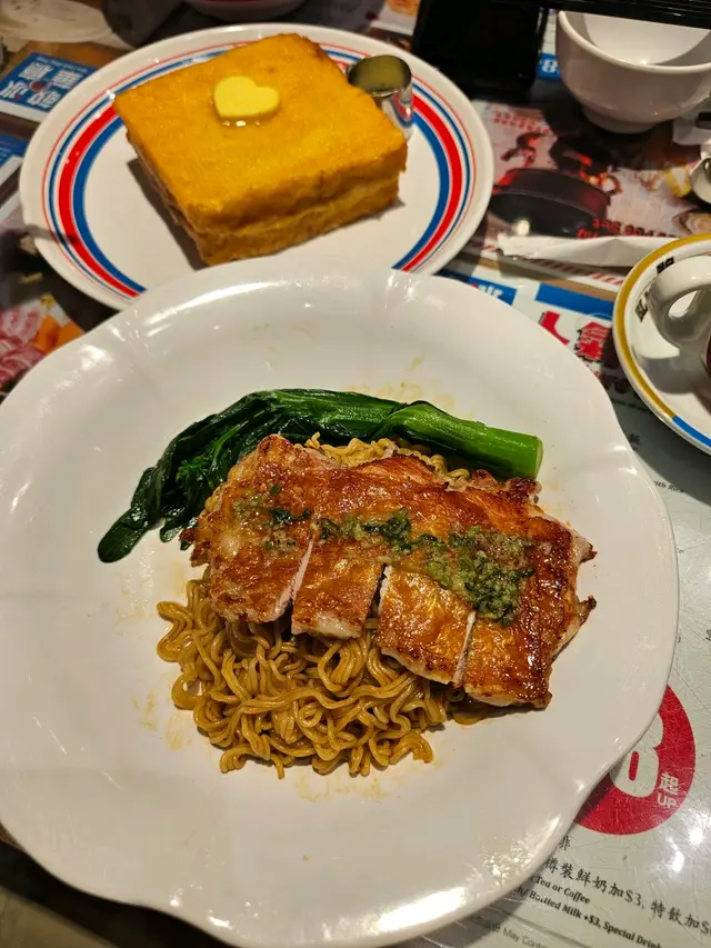 今朝又去食早餐, 去到灣仔考慮緊食邊間, 之後經過呢間冰室, 門口見到入面早餐唔錯, 就試一試, 叫咗個醒神扒餐配雞扒米粉, 在加錢要多條腸仔, 見佢入面原來唔係普通多士而係蒜蓉多士, 食物未嚟到之前有啲期待雞扒米粉嚟咗, 雞扒有用黑椒, 食落都可以, 米粉正常茶餐廳味道🙂🙂感覺呢間嘅腸仔都唔錯, 所以見到枱枱都嗌腸仔😋😋最緊要當然係好少餐廳見到嘅蒜蓉厚多士, 食落都幾好味, 真係好厚身蒜蓉味好香, 即刻加分🥰🥰下次經過都會再嚟食, 大約50蚊左右🤑…Read More