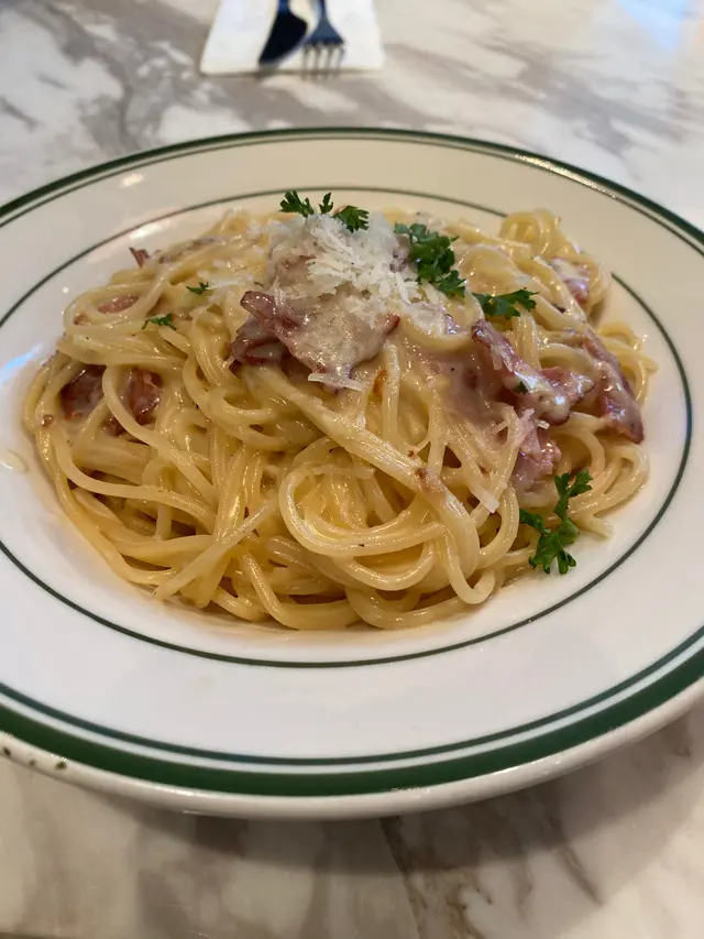 Lunch見有派傳單話8折就去試下,所有餐都跟湯跟飲品,湯飲落有小小磨菇容,唔似係用粉沖,幾好飲。卡邦尼意粉好普通,奶油味唔夠重,整體都偏淡。青醬雞肉意粉,雞胸好鞋口,仲好似無醃過好淡,啲長通粉充滿青醬,好草青味唔咸又唔辣,問店員拎咗支tabasco落先勉強食得落。牛扒薯菜牛扒係一般野,唔係高質,似屋企煎,薯條係粗薯條,好食。飲品都係coffee or tea無咩好特別。…Read More