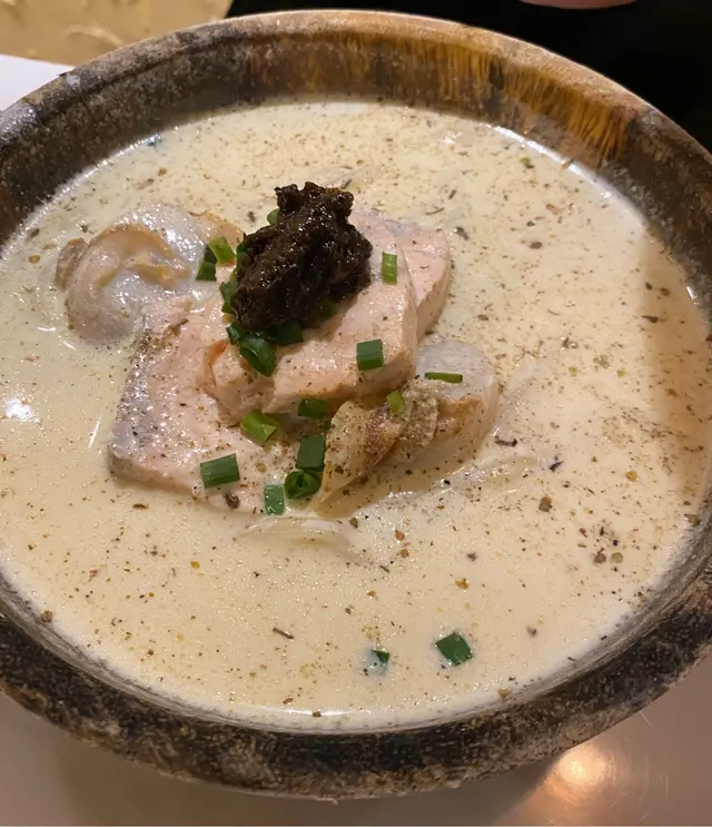 好似最出名就係呢個黑松露忌廉海鮮烏冬,見門口啲poster好似話咩第一名攞獎甘,入到去啲menu好舊,好似用左好多年甘。有一堆黑松露醬係頂,聞到都覺得正,不過個木碗又係好舊,啲邊個感覺好似入左好多菌甘。湯係奶白色,唔會好稀。海鮮其實即係得三文魚同帶子,不過都幾多餸。啲海鮮無咩鮮味,個忌廉湯底就好杰既,但陣味就唔似飲金寶湯,似淡忌廉加水再加啲黑松露味甘,都ok既,唔會好味精。烏冬方面就係用扁烏冬,無咩咬口,我都係比較中意煙韌啲。…Read More