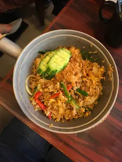 星期六難得返工,今日班同事話要行去花園街嘅永珍食越南野,原來星期六嘅菜單係要加$6 ,午餐嘅選擇都係以湯河、炒粉麵為主。似乎都係平日過嚟食比較經濟實惠。今日試咗泰式炒飯,食落去辣辣地,加咗少少扎肉,雞蛋等配料落去炒,都算香口。而且炒飯能做到粒粒乾身,而且又唔會有太過油嘅感覺,辣辣地的感覺幾刺激。朋友嘅咖喱牛肉飯都唔錯,不過略嫌牛肉比生粉醃得太犀利,而且食唔到任何肉味。分量都係夠嘅,所以男仔來食都唔需要擔心。…Read More