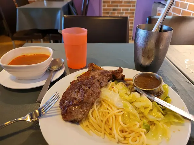 九龍城食肆有唔少,但1個人的午餐,其實選擇唔算多,價錢唔平但質素亦好參差。路經呢間餐廳,見到店員姐姐積極推介,就即管試下。Lunch set,一共有8款選擇, 包左。湯(加餅乾條),。主菜。餐飲$53起錶,最貴的$88,唔駛加一,我覺得算係相宜。我今次就試左佢嘅牛扒意粉,份量足,牛扒大大件,但又唔會乾晒柴,即使唔落汁,味道亦都好ok.2位店員姐姐,手腳快,又好禮貌。小店唔易做,要支持一下,所以會再幫襯~~…Read More
