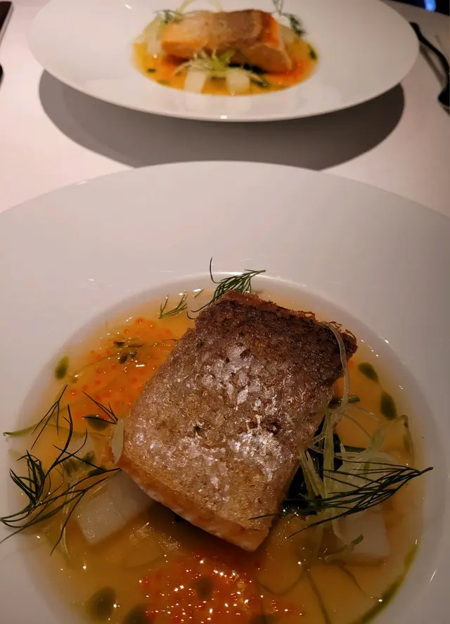 之前試過位於尖沙咀海港城的分店,但只限於咖啡甜品,今次有由北京來港的朋友想食西餐,於是決定試試佢嘅午市套餐 :面包 : 雖然係餐前送的,但係熱上兼外脆內軟,唔錯唔錯;湯 : 是日係南瓜湯,唔會太"杰‘’,南瓜味亦重;主菜 : 我和朋友都揀左三文魚,賣相吸引,魚唔會過熟,配以帶點點酸味的汁醬,好夾!服務員招待殷勤,坐得舒服,唔會限時限刻俾人趕交枱。$298(未加一)的2道菜(包咖啡或茶),係太古廣場黎講算是合理。…Read More