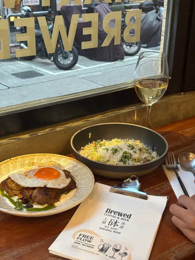 去咗上環嘅Brewed,餐廳環境溫馨,木質枱面同吊燈設計都幾有文青氣息,坐喺靠窗位真係幾chill 😌叫咗幾款都冇失望,食物嘅賣相真係吸引!枱上嘅香烤雞肉多士好突出,頂住一個流心蛋,蛋黃流出同烤雞肉混和,配上綠色嘅青醬,色香味都一流,食落口感豐富,雞肉烤得香脆,份量啱啱好 😋黑松路貓耳朵pasta 滿佈松露同芝士,芝士味同醬汁都好濃郁,配少少火箭菜,味道濃郁順滑,見到都覺得食慾大增另外宇治抹茶鮮奶都好濃抹茶味,奶泡上嘅心形拉花精緻,抹茶色澤濃郁,飲落清香又順口餐廳環境同食物呈現都好有心思,服務員態度友善!價錢就分別係黑松路貓耳朵$128、香烤雞肉多士$108、抹茶鮮奶$42,適合同朋友輕鬆食餐。之後會再返嚟試吓其他菜式,推介俾鍾意西式輕食嘅人!🥪…Read More