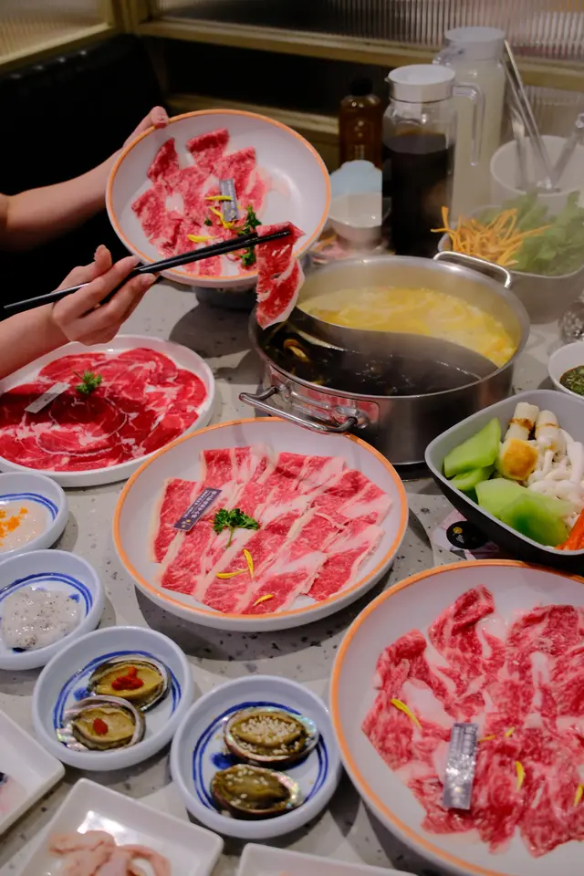 各種和牛比想像中更高質!原來而家放題牛肉嘅質素已經咁高🥹D餐多好多款食物,蠔/鮑魚/牛丸等等,仲包生啤任飲折完都係300蚊頭,即刻9衝我哋叫咗壽喜燒+椰子雞湯,策略係用壽喜燒湯煮和牛,椰子雞湯煮其他😎非常成功!全部菇/菜浸滿晒椰子味勁香,日本和牛配壽喜燒冇得輸🥰佢個壽喜燒湯非常之濃,如果想再濃味啲嘅 啲和牛可以浸耐啲湯,唔驚會變鞋,反而會更加濃壽喜燒味!意外地都非常好食!牛肉方面,主要試咗4款:🥩極上安格斯牛小排- 油脂感最強,好似傳統日式和牛咁,入口即溶,唔使咬咁滯!🥩日本黑毛和牛A4+- 油脂同肉比較均衡,都係完全冇筋- 和牛味極濃 唔使點豉油都好好味!🥩南非和牛三花腱🥩澳洲M6和牛牛腹肉- 呢兩款係C餐嘅牛,比較厚實啲冇咁多油脂,但一樣完全冇筋!肉味相對冇咁濃冇咁滿足,差$40我哋建議都係上D餐!🦪勁大隻蠔 極肥美成隻碟咁大!差啲夾都夾唔起!都係要D餐先有🫡🍽️磯煮鮑魚 花雕醉鮑魚嚟到肚餓可以叫定鮑魚即食🤣🤣都係D餐先有的!花雕味好香好濃,做開胃菜一流🍽️墨魚鮮蝦滑值得一提呢款墨魚滑勁好味!超爽口彈牙,入面有少少黑松露味🍡牛丸個人覺得瀨尿牛丸一般般,普通牛肉丸就好正👍🏻…Read More