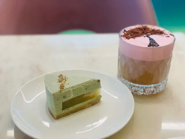 路过这家装修很小清新的店,点了牛油果芝士蛋糕和樱花红茶。~~~~~~~~~~~~~~~~~~~~~~~~~~~~~~~~~~~~~~~~芝士蛋糕中规中矩,奇异果夹心中和了芝士奶酪,再加上希腊酸奶的口感,属于这个价位的中等水平