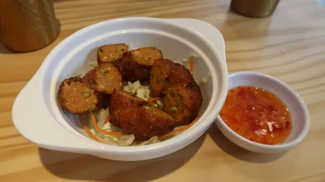 朋友找到這一間台式料理店剛好我們都很想念台灣的食物就相約來吃了😂老闆是台灣人室內佈置的蠻可愛的~似乎是台東人?哈哈我不知道<MENU>選擇算蠻豐富的🥹而且還有下午茶餐感覺很抵🤤冰品甜品也看起來好好吃!!<烏龍珍珠奶茶>味道做的很台耶🤤而且珍珠是軟的!!其實在香港喝過很多珍奶店珍珠都沒有煮到很熟裡面是硬的…所以這邊珍珠是軟的很驚艷🤣推推<蚵仔麵線>這個跟台灣味道沒有分別!!好好吃🤤必點!<麻辣鴨血豆腐冬粉>味道也很台🤤只不過沒有到很辣希望可以辣一點😂除此之外沒有別的就是很好吃😋<關山臭豆腐>這一道也很台很好吃🤤居然有很台的酸泡菜很讓人驚艷也是會重複點來吃的食物!!<蕃茄紅燒牛肉麵>牛肉燉的很嫩湯也不錯喝份量蠻大份男生蠻夠<酥炸排骨飯>這個真的太好吃了嗚嗚還可以加很台的辣粉真的太絕炸排骨飯也是我在台灣的愛吃的而且他的飯是滷肉飯🥹炸排骨也很酥很好吃!<炸花枝丸>很大顆很好吃也是可以加很道地的辣粉非常棒台灣的炸物一定要加辣粉才道地好吃啊😋喜歡~<蚵仔煎>這個我覺得口味跟我在台灣愛吃的那種不太像😂底部加了豆芽菜有點怪XD在台灣好像沒有吃過有加豆芽菜的🤔還是是我見識太淺🤔總之我覺得吃不太習慣XD好了,總結這一間台式小店目前點過的食物來講大致上都很道地很好吃!想家時應該會常常來吃🤣激推!…查看更多