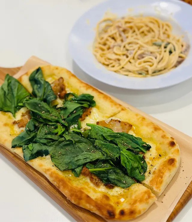,不愧為招牌,紅蝦味道濃郁,闊條麵亦很有口感。上主菜之前係一個清清喉嚨嘅青蘋果雪葩。
