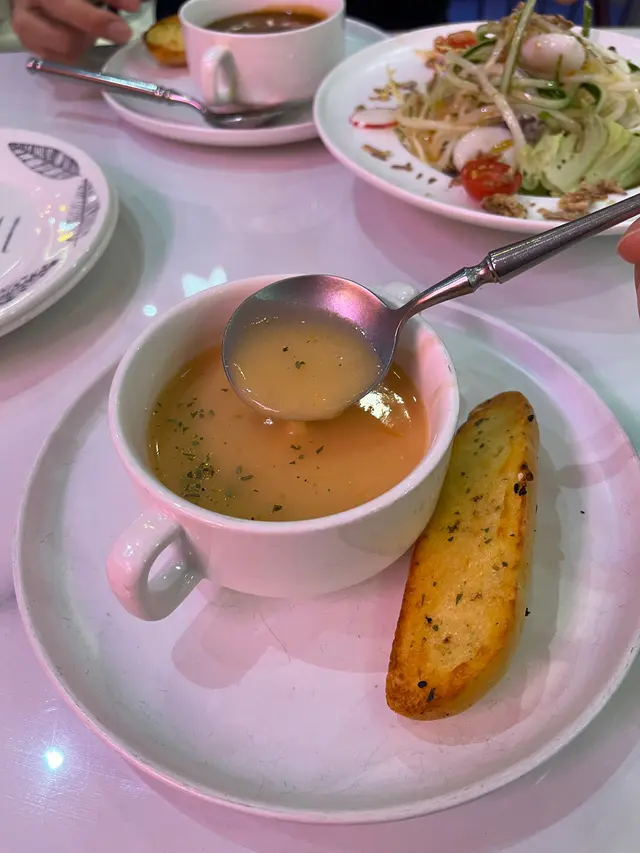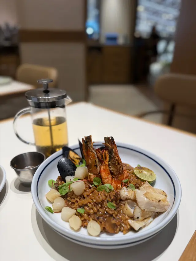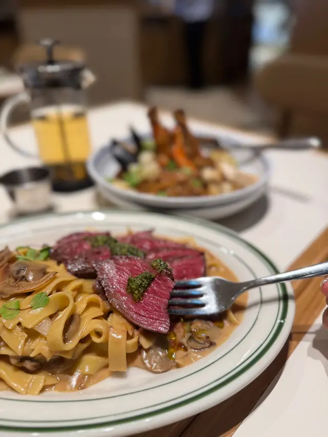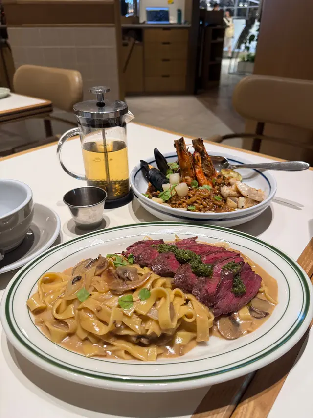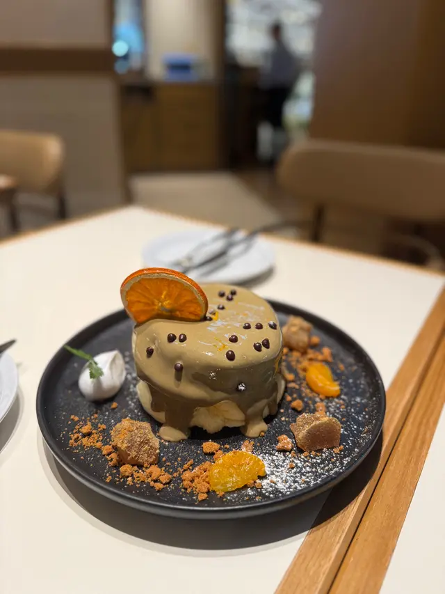 終於兩個人一齊嚟食the Pantry,班戟當然要share食先開心。主角之一係煎封門柳伴白菌燒汁闊條麵。一睇就知道係Bf會叫嘅嘢食。闊條麵好掛汁,白菌汁好香,配埋少少牛肉汁。封門柳點咗medium,肉質嫩滑。配阿根廷青醬,歐芹及大蒜味令牛扒食落唔會膩。另一款選擇咗fusion菜:冬蔭意大利飯。味道重東南亞味,用咗不同香料例如薄荷葉令到整個飯都好香口。海鮮絕對唔馬虎,每一樣都先香煎,有珍珠帶子、虎蝦、青口,同比目魚柳。連唔鍾意食魚嘅Bf 都大贊比目魚煎得香脆。最後到主角之中嘅主角,係期待已久嘅焙茶疏乎厘班戟。Ricotta 厚班戟口感鬆軟,好似食緊muji棉花糖咁樣,食幾多嚿都唔會膩。再加埋焙茶醬簡直係天作之合!焙茶醬好濃郁,勁有茶味,估唔到配埋柑橘會咁夾,濃得黎帶點清新。每一啖都要鋪滿咗焙茶醬。連埋朱古力脆米食更增加口感。班戟絕對要encore!…Read More