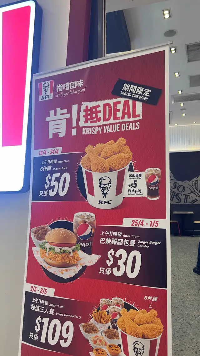 今日行街經過見到KFC門口拉咗呢個海報!OMG又係我最期待嘅優惠桶餐啦因為耐不耐就有鋪癮好想食煎炸嘢或者好想食甜嘢最近就係好想食煎炸嘢啦!今日瞓醒覺趕住出門口咩都冇食直至到差不多,下晝兩三點先有時間一個人叫左$50/6件雞桶餐另外加咗杯凍檸茶坐低堂食慢慢嘆雖然都好多人見到好多公公婆婆同埋學生都叫呢個餐但係上餐速度都好快俾完錢都唔使3分鐘就已經拎到個餐啦皮脆肉嫩又多肉汁見到呢個紙杯蓋就知道KFC已經實行走塑啦所以而家去到KFC都冇膠手套派啦唯有用多幾張紙巾抹手,或者直接去洗手啦…Read More