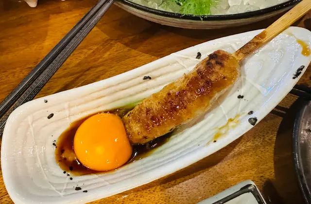 話明燒烤店,自然要試吓佢哋嘅燒烤物!試咗雞軟骨、牛舌、雞翼,最特別嘅係呢款雞軟骨腸仔配新鮮蛋黃,雞軟骨腸外脆內軟,配上蛋黃汁,非常滑溜!Oishi 美味しい!